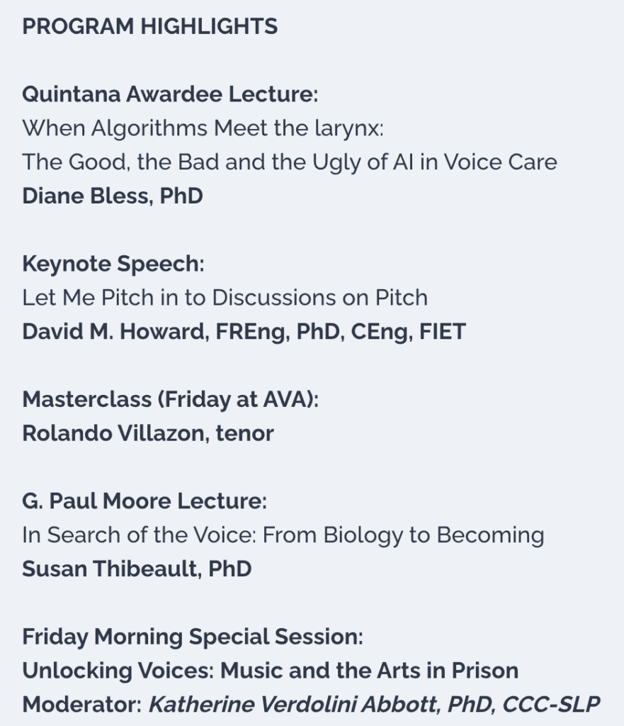 For over 50 years, The Voice Foundation has advanced the understanding, care, and training of the human voice by uniting clinicians, scientists, teachers, and performers. Through innovative research, trusted education, and global outreach, we empower voice professionals and the public to protect, heal, and celebrate the power of the human voice.