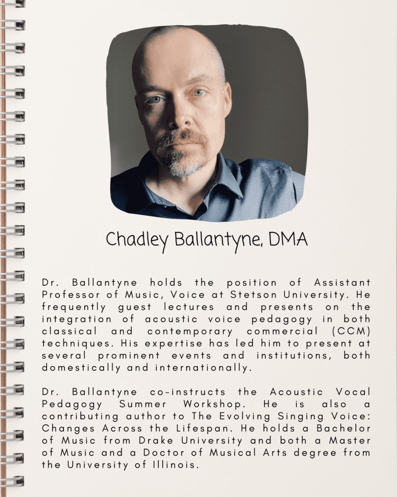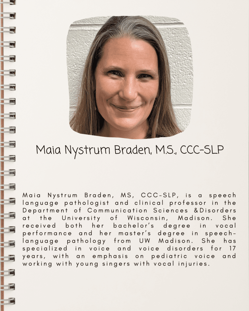 In this hour-long presentation, UAB Voice Center Clinical Fellows Sarah Hoch and Jacob Wright will discuss their paths to voice specialized speech pathology, identify and debunk common misconceptions about the voice among singers, and explore the relationship between the voice instructor and speech pathologist.
