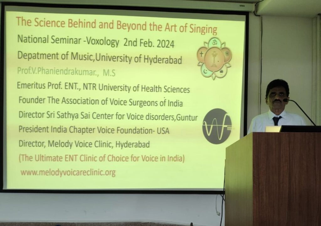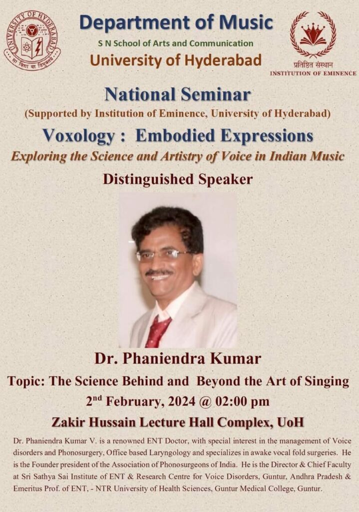 Invited talk on Science behind and Beyond the Art of Singing at Department Music , University of Hyderabad on 2nd Feb. 2024