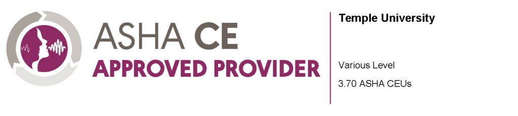 This course is available for partial ASHA CEUs. CEUs are awarded only for sessions which a participant attends and completes attendance requirements.