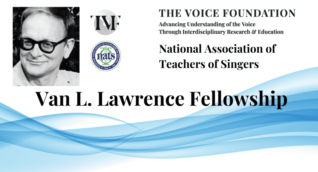 The 2020 Van Lawrence Fellowship Award Congratulations to Edrie Means Weekly! Awarded jointly by The Voice Foundation and National Association of Teachers of Singing Foundation “The Parameters of Breath Stamina and Muscle Tension in Elite Musical Theatre Singers Post Covid19 and Whether Those Parameters Change with Treatment Protocol” Edrie Means Weekly, MM, is an active…Student Membership